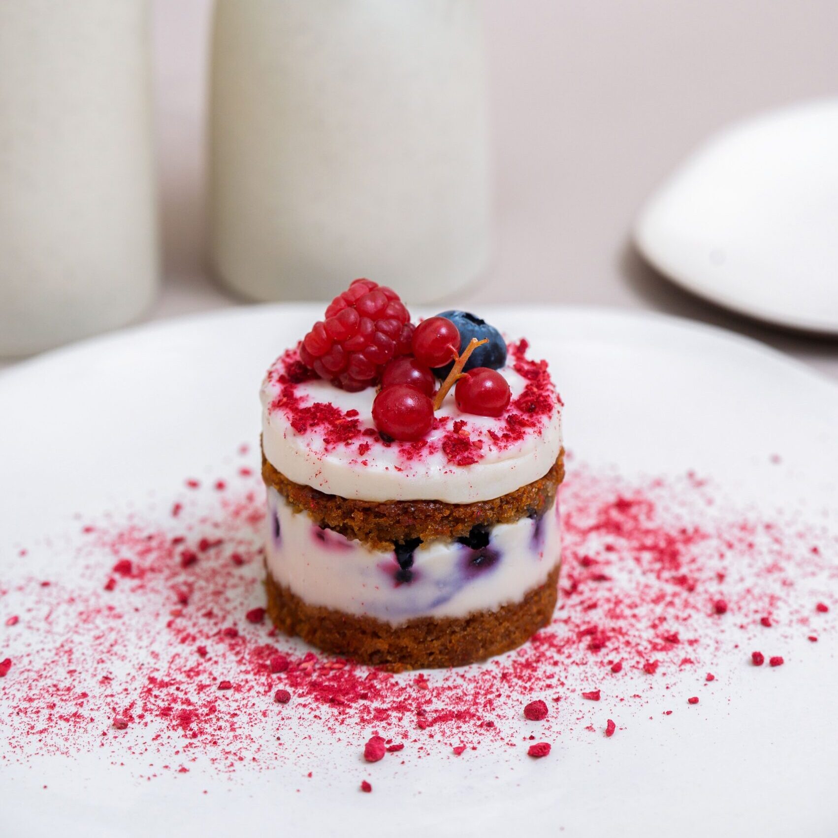 Fructe în interiorul tortului 20%: mix de fructe de pădure – mure, afine, coacăze roșii, coacăze negre, zmeură*